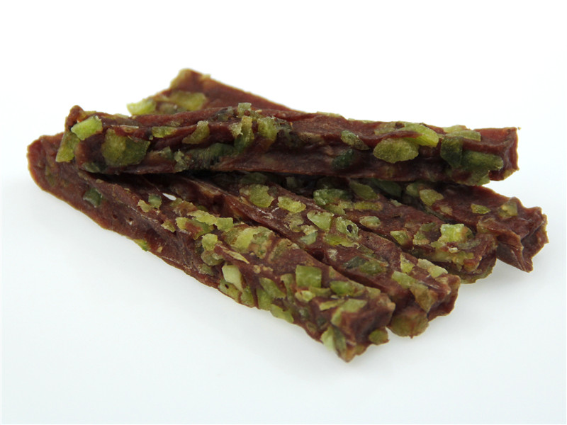 Pato 79,5%, kiwi 8%, proteína vegetal 5%, harina de trigo 3%, glicerina 4%, sal 0,45%, sorbato potásico 0,05%