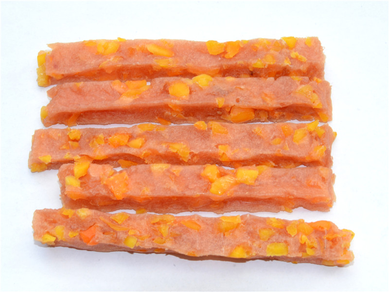 Pollo 79,5%, Batata 8%, Proteína vegetal 5%, Harina de trigo 3%, Glicerina 4%, Sal 0,45%, Sorbato de potasio 0,05%