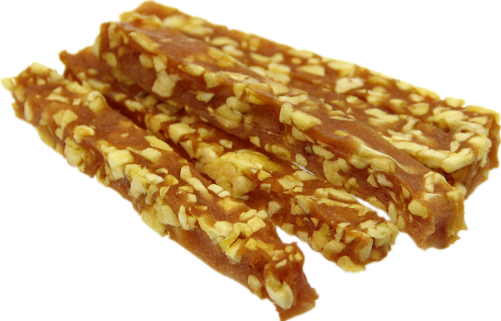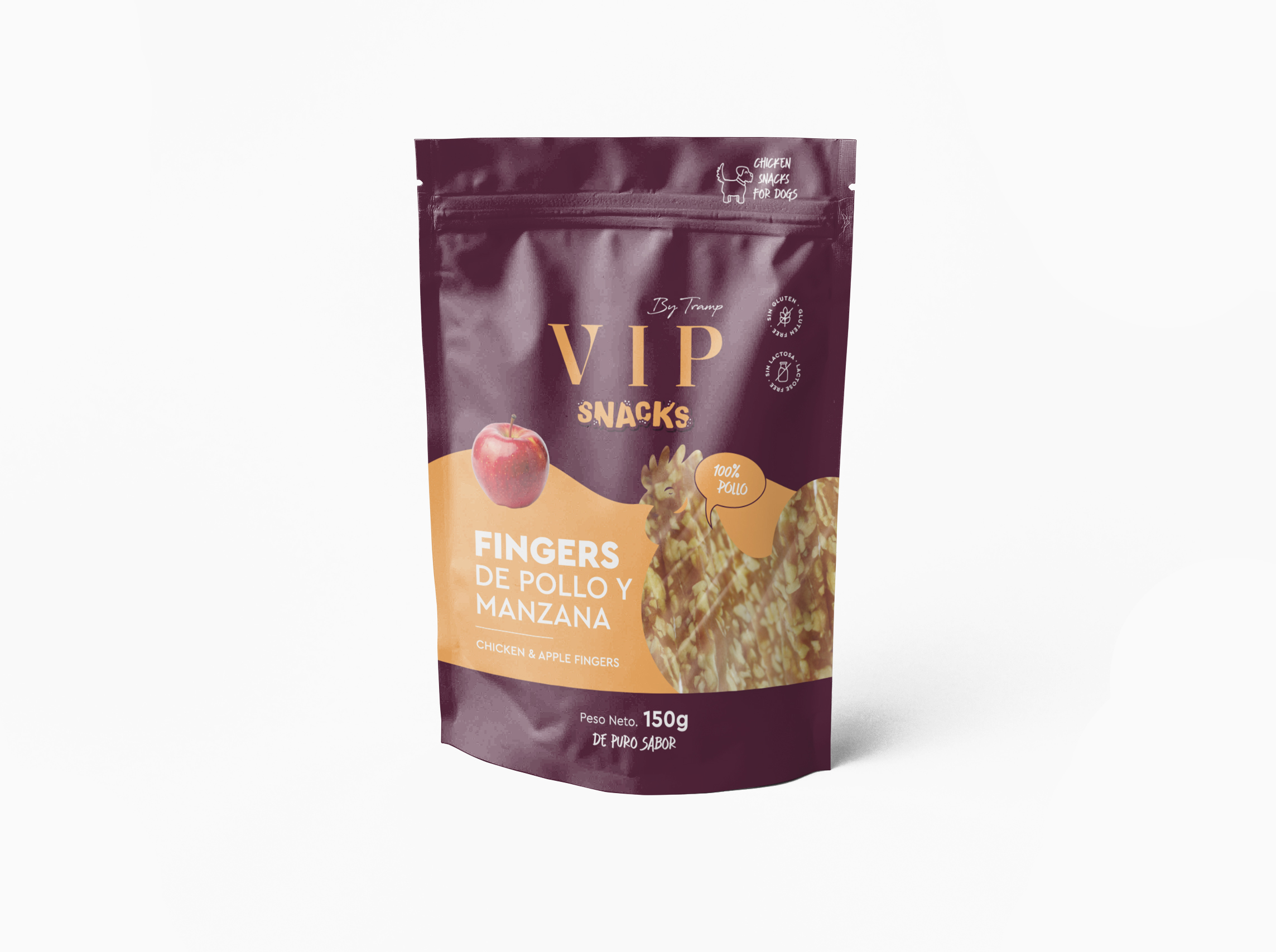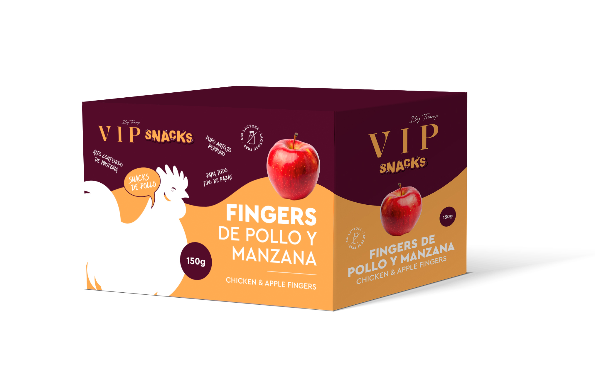 Pollo 82,5%, Manzana 5%, Proteína vegetal 5%, Harina de trigo 3%, Glicerina 4%, Sal 0,45%, Sorbato potásico 0,05%