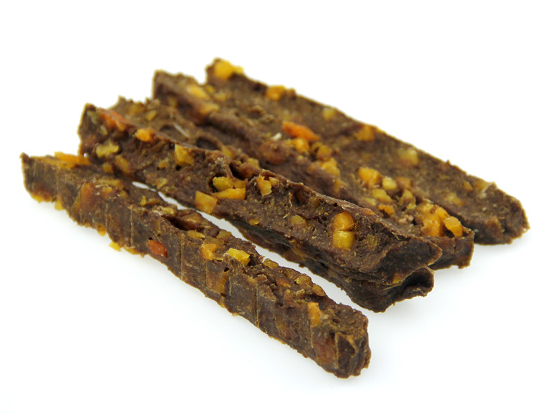 Salmón 79,5%, batata 8%, proteína vegetal 5%, harina de trigo 3%, glicerina 4%, sorbitol 2%, sal 0,45%, sorbato de potasio 0,05%